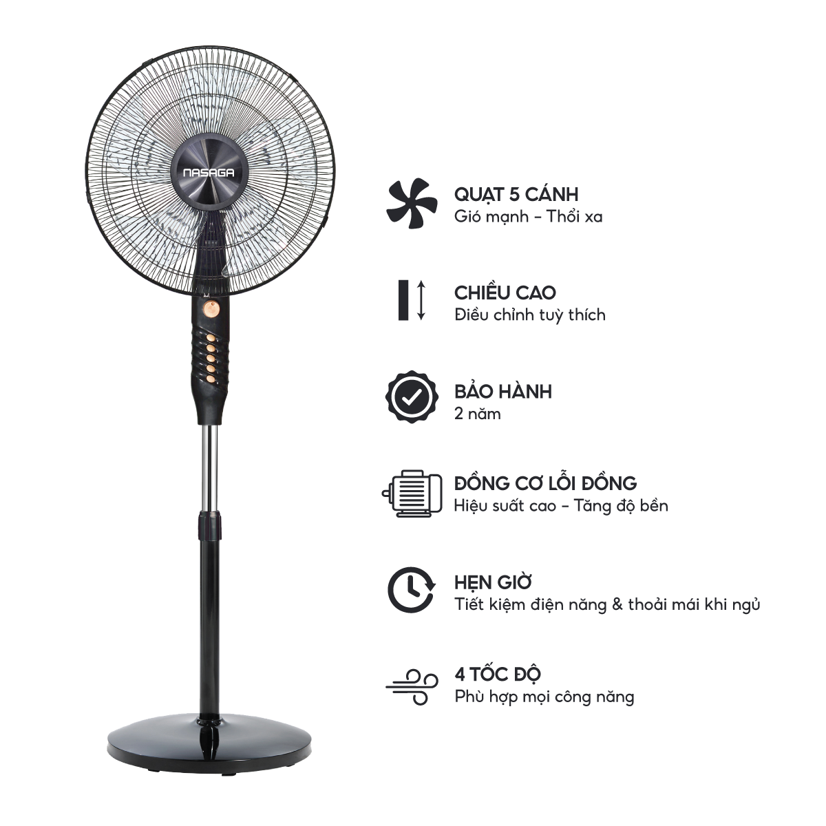 QUẠT ĐỨNG NASAGA NF-1665 (Đen)